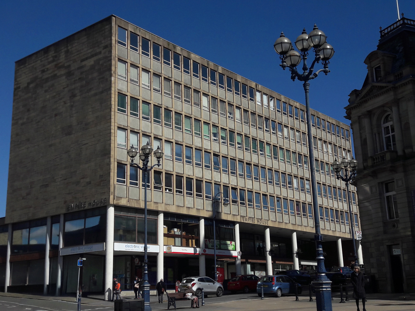 Empire House is a landmark commercial building in the centre of Dewsbury, positioned directly beside the Town Hall and surrounded by civic institutions, public transport links, and essential local amenities.